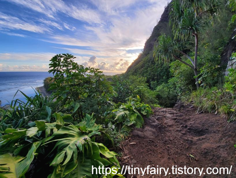 코스: 칼랄라우 트레일 입구 → 하나카피아이 비치(Hanakapi Ai Beach) 2마일 (→ 폭포 2마일)