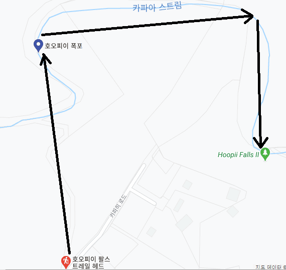 가는 방법: 차를 타고 Hoopii Falls Trail Head까지 가면 팻말이 있음. 그 입구로 들어가면 됨. 주차는 길가에 세워서 하면 되는 데, 주차 공간이 따로 없어서 일찍 가는 걸 권장. 앞에 가정집들 있기 때문에 시끄럽게 소리 내는 것을 주의해야 함.