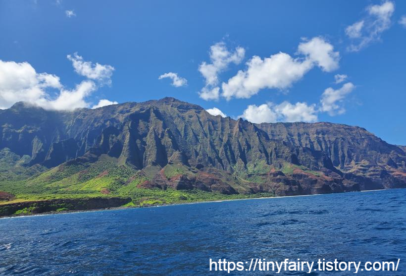 나팔리 코스트 엄청 아름답습니다. 헬기에서 본 것보다 훨씬 더 가까이에서 보는 느낌이고 더 장대하고 장엄합니다.