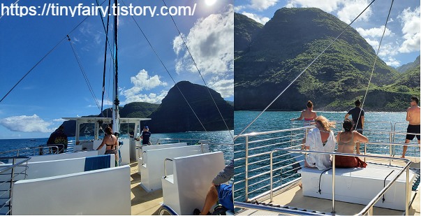 하와이에서 했던 액티비티 중에 제일 재밌었던 액티비티입니다. 특히 카우아이에 가게 되면 사람의 접근이 어려운 나팔리 코스트를 보기 위해 헬기나 보트 투어를 많이 합니다. 둘 다 해봤지만 보트가 훨씬 더 만족감이 큽니다. 너무 재밌습니다.