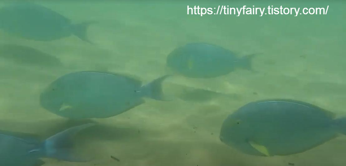 물고기들이 정말 많습니다. 거의 양식장같은 느낌입니다. 천적이 없어서 그런지 물고기들도 많고 통통합니다. 수족관안에서 수영하는 기분이었습니다. 그만큼 어종도 다양하고 한자리에 모여있습니다.