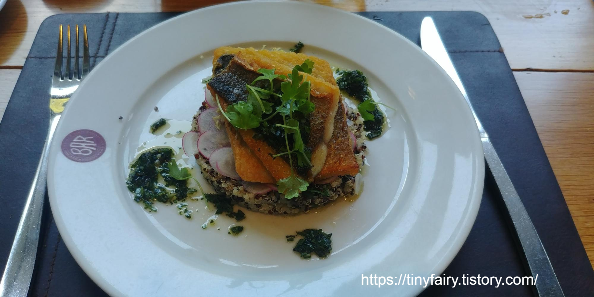 노 팁 레스토랑인 데다가 음식도 맛있습니다. 다만, restaurant week menu를 선택하면 식전 빵은 제공되지 않습니다. 이점은 아쉽지만 음식은 맛있습니다. 특히, corn soup와 crispy salmon(껍질이 바삭한 연어 구이) 요리가 맛있습니다. 이 요리 때문에 같은 행사 기간에 두 번 갔습니다. 노팁 레스토랑이라 높은 수준의 서비스는 바라지 않는 게 좋으나, 서비스는 나쁘지 않습니다. 식당 위치는 MOMA 옆이라 접근성이 좋습니다. 친구들끼리 와도 좋은 분위기입니다. 실제로 친구들끼리 온 모습을 많이 봤습니다.
