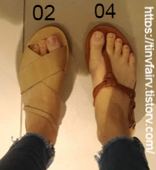 Venice Sandal 01, 02, 04가 맘에 들어서 신어보았습니다. 신어보니, 02, 04가 발에 더 잘 어울려보여서 고민을 좀 했습니다. 저는 칼발이고 발에 살이 없는 편이고, 신발은 보통 245~250정도로 신습니다. 01, 02, 04 전부 다 245로 신으니 잘 맞았습니다. 뭔가 발 사진을 올리려니 쑥쓰러운데 샌들 선택에 도움이 되었으면 좋겠습니다.