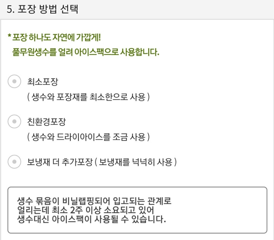 연어같은 걸 시켰을 때는 '보냉재 더 추가 포장'을 선택하고,