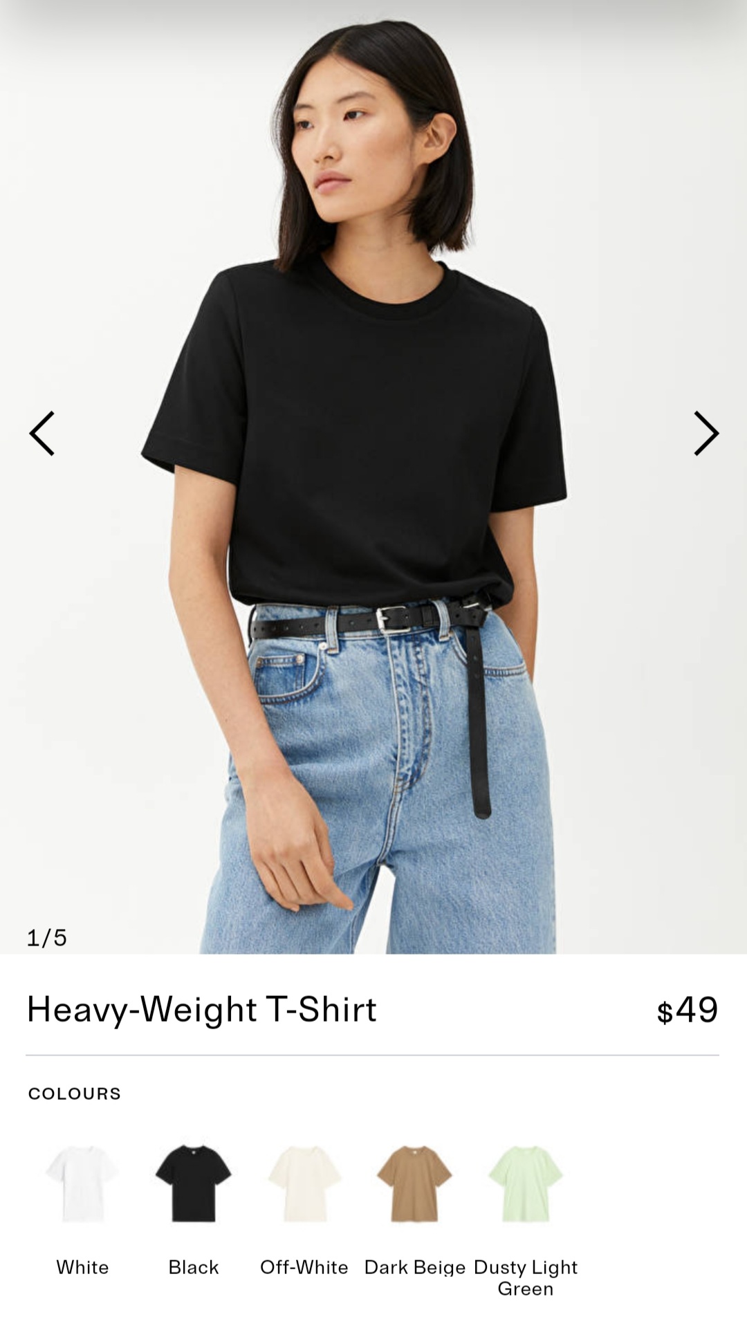 더현대서울에 가서 매장에서 직접 입어보고 구매하였다. 피팅룸이 널찍하고 깔끔해서 좋았다. 제품명: Heavy-Weight T-Shirt 소재: Cotton 96%, Elastane 4% 가격: 55000원 색상: 검정 흰색도 이뻤는데, 뭘 묻힐까봐 아무래도 비싼 가격때문에 검정색을 택했다. 원단: 헤비 웨이트 티셔츠답게 굉장히 탄탄하고 도톰한 소재다. 탄탄한 원단이 나의 군살도 가려주는 것 같고 뱃살도 잘 숨겨주는 것 같아서 좋다. 핏: 핏이 제일 맘에 들었는데, 네모네모 딱 맞게 떨어지는 핏이다. 소매 핏이 특히 이쁜데, 팔의 2/3를 덮어서 살이 붙은 내 팔뚝을 싹 가려준다. 사진속 모델과 같은 핏이 나온다. 앞판과 뒷판이 완전 길이가 같고, 트임도 없다. 이게 불편하지는 않는다. 길이감이 좋은 데,..
